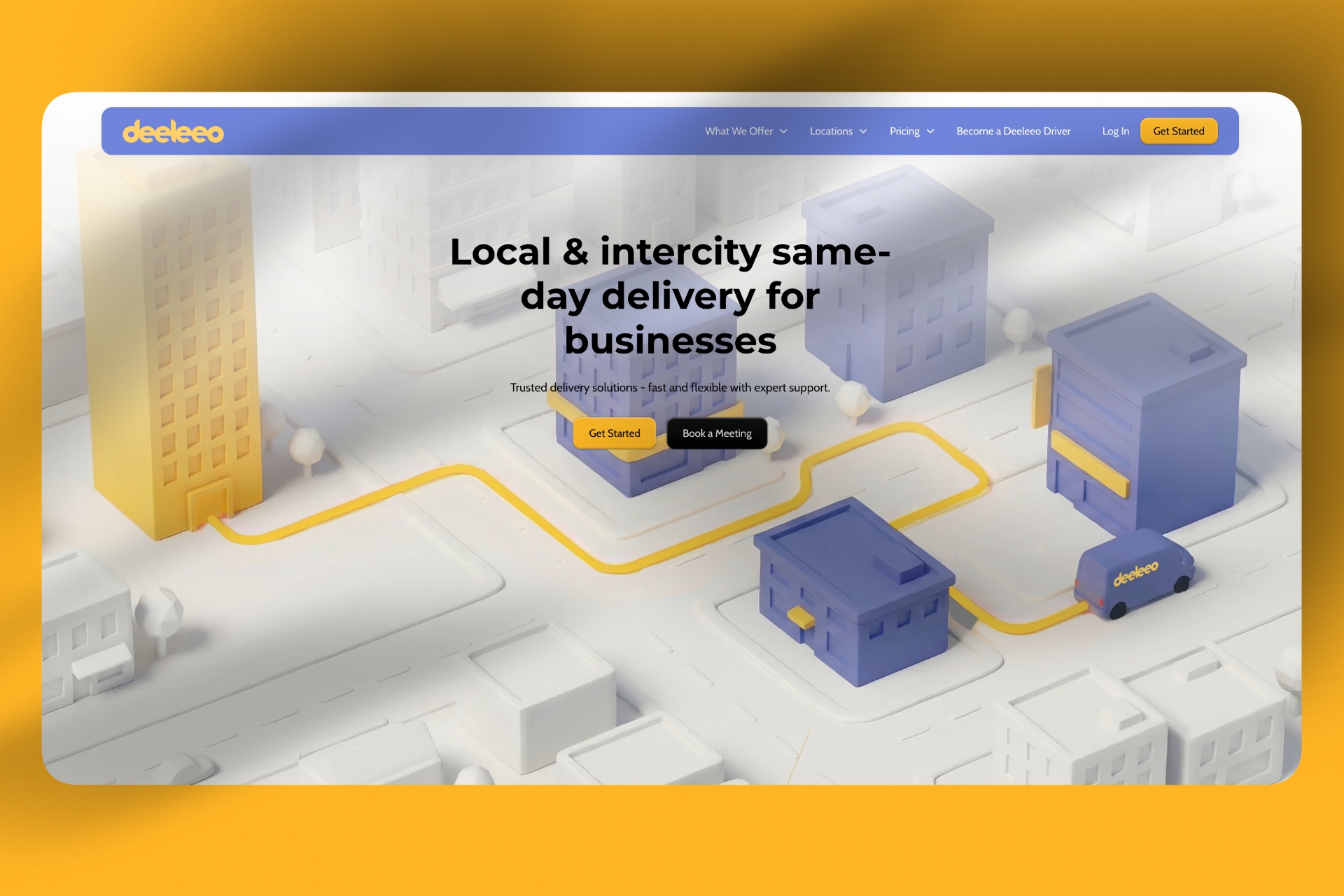 Deeleeo is a same-day shipping service offering efficient local and intercity deliveries across cities in Alberta and British Columbia. Tailored for both businesses and personal use, Deeleeo enables users to access affordable, trackable, and reliable same-day deliveries, enhancing customer experience. As their business evolved, Deeleeo returned to us for a website refresh where we continued to evolve their brand and give them a distinct personality.